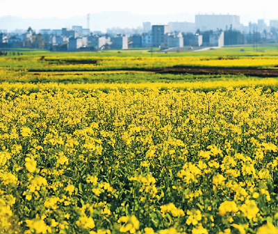 正當(dāng)北國(guó)冰天雪地之時(shí),云南省羅平縣的百萬(wàn)畝油菜花已經(jīng)成片綻放,散發(fā)出濃濃的春意。當(dāng)?shù)赜筒嗣磕?月初就開(kāi)始開(kāi)花,花期可以持續(xù)到三月份,油菜花是當(dāng)?shù)刂匾穆糜沃еa(chǎn)業(yè)。上圖為云南省羅平縣臘山街道法金甸村的油菜花美景。毛 虹攝(人民圖片)