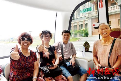 8月20日,參加體驗(yàn)乘坐的市民為無(wú)人駕駛小型巴士“點(diǎn)贊”。