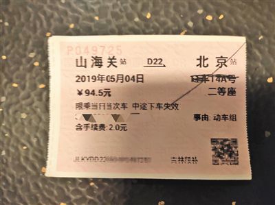5月4日,五一假期返程高峰。新京報記者購買短途火車票,體驗“買短乘長”,進站后只需補票并繳納2元手續(xù)費后,即可乘往終點。律師表示,旅客自購買車票后,事實上就已與鐵路部門形成了運輸合同關系,因為鐵路部門的原因,導致旅客沒有按時乘坐火車,系鐵路部門違反了合同的約定,應當承擔違約責任。