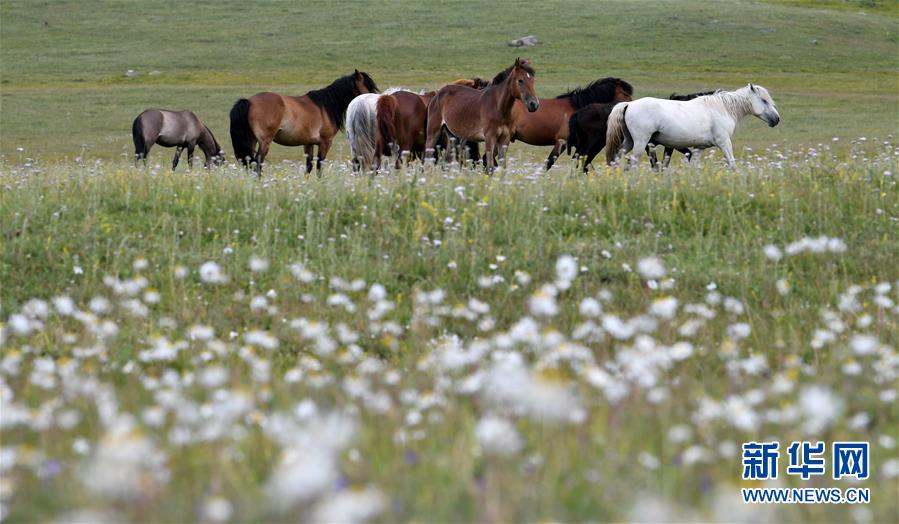 這是6月21日拍攝的新疆阿勒泰地區(qū)哈巴河縣的牧場(chǎng)風(fēng)光。新華社記者 沙達(dá)提 攝