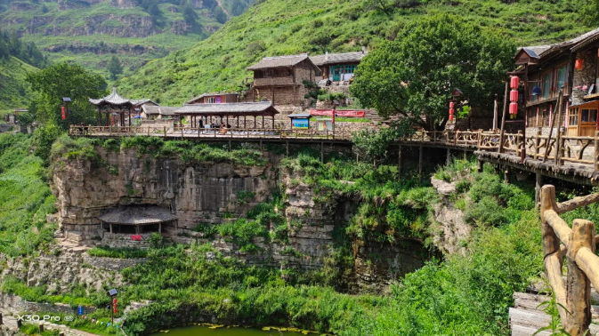 位于山西省蘆芽山晉西北管涔山深處,濃密蔥蘢的林海之中,有三個古老神奇的懸空村:王化溝村、五花山村、曹家梁村,均屬寧武縣涔山鄉(xiāng),三村相距很近分別建在懸崖絕壁間,遠(yuǎn)望好似空中樓閣,天上人家。村里房屋都建在百米高的懸崖絕壁上,街道是立木支撐、圓木鋪架的“棧道”。在這個古老的村子里,處處可見石砌的小徑、古樸的民居,村民們悠然地過著日出而作、日落而息的農(nóng)耕生活。村子古老、靜謐,卻遠(yuǎn)近聞名。