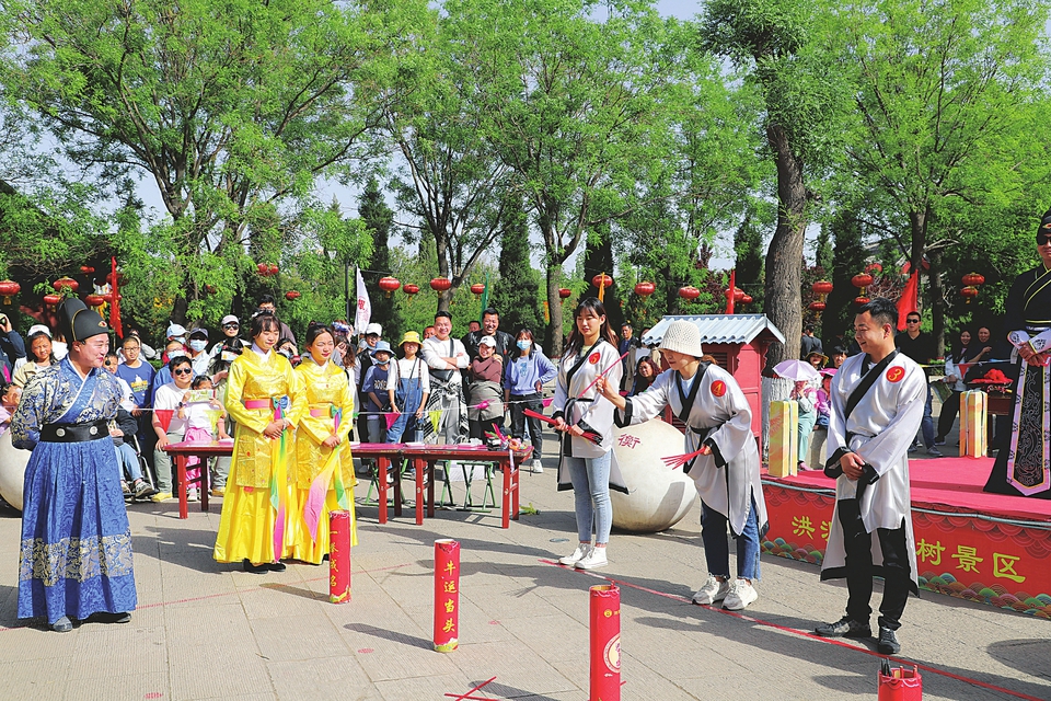 洪洞大槐樹(shù)景區(qū)推出的“中秋合家歡 全家總動(dòng)員”活動(dòng),吸引了不少游客踴躍參與。 本報(bào)首席記者栗美霞攝