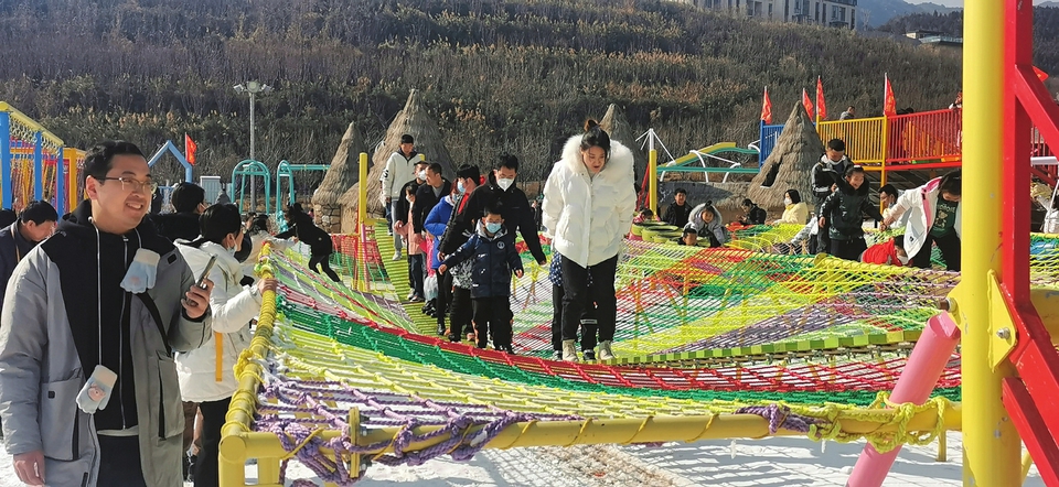 2月5日,省城玉泉山冰雪樂園里,市民們正在開心嬉戲。據(jù)悉,在文旅市場全面復(fù)蘇之際,玉泉山景區(qū)舉辦了彩燈冰雪節(jié),打造了“花燈+冰雪”兩大主題樂園,豐富擴大了省城旅游項目,成為吸引省內(nèi)游客休閑度假的重要內(nèi)容。其中,冰雪樂園占地186畝,由2個大雪道、10個小雪道和戲雪區(qū)組成。