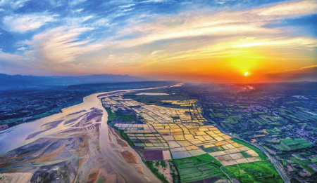 5月20日,垣曲縣古城鎮(zhèn)黃河庫區(qū)邊的曙猿灣村,波濤滾滾的黃河、生機(jī)勃勃的農(nóng)田,繪就一幅秀美的生態(tài)畫卷。