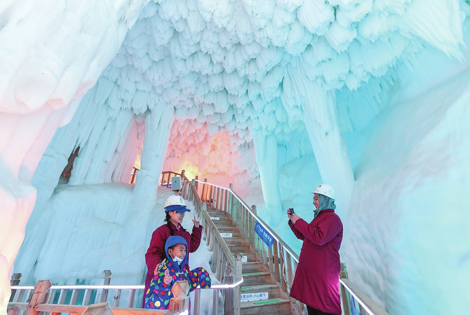 七月二十七日,在鄉(xiāng)寧縣云丘山景區(qū)超大冰洞群,游客在拍照留念。盛夏時(shí)節(jié),這個(gè)奇妙夢(mèng)幻的冰雪世界,吸引了數(shù)以萬(wàn)計(jì)的游客。閆銳鵬攝