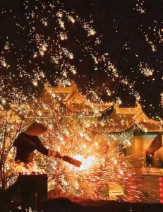 活動(dòng):來自湖南瀏陽的專業(yè)煙花團(tuán)隊(duì)根據(jù)榆次老城環(huán)境特色,打造一場(chǎng)炫酷煙火電音的煙花秀,用零煙花瀑布技術(shù),在安全的前提下為游客帶來視覺與美的極致體驗(yàn),將極光天幕+雪景泡泡禮花相結(jié)合,以年輕人的視角與這座百年的歷史古城完美契合,迸發(fā)出新時(shí)代的活力和浪漫。今年榆次老城首次引入大型威亞表演,在電音舞臺(tái)上方演員“飛”奔而來,絢爛的舞臺(tái)燈光承接美輪美奐的威亞敦煌飛天,在45分鐘的飛天表演中,一場(chǎng)傳統(tǒng)美學(xué)和現(xiàn)代流行的結(jié)合悄然展開,重回千年前的敦煌。同時(shí),老城內(nèi)整體以紅色為主色調(diào),琳瑯滿目的春聯(lián)、門神、年畫、福字、橫批、窗花等紅色喜慶元素、布置各種具有著吉祥寓意的大型燈組供游客打卡拍照。