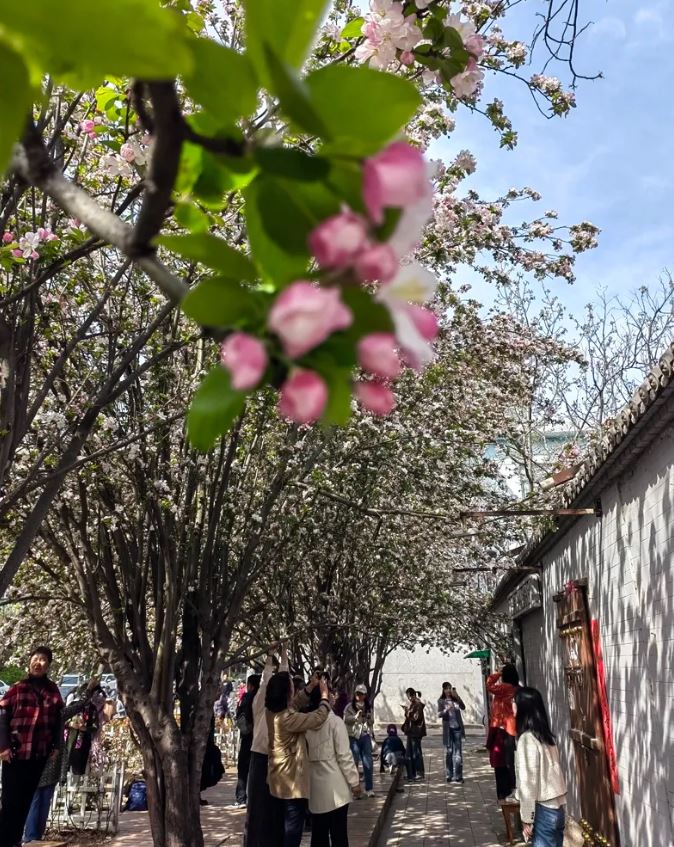 山西日報新媒體記者吳曉慶報道 清明時節(jié),一場綿綿春雨過后,太原杏林七條盛放的海棠讓人們邂逅了一場美不勝收的花海。粉白相間的海棠、富有年代感的木門與灰色的磚墻,優(yōu)雅中帶著古典,古典中又透著浪漫的氣息,清明小長假,許多市民身著艷麗的服裝,前來這條位于桃園三巷附近的“網(wǎng)紅”小巷打卡留念。