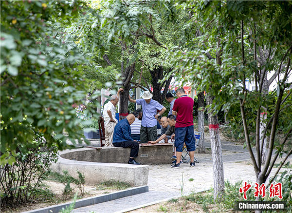 居民小區(qū)公園乘涼的老年人。王中勛攝