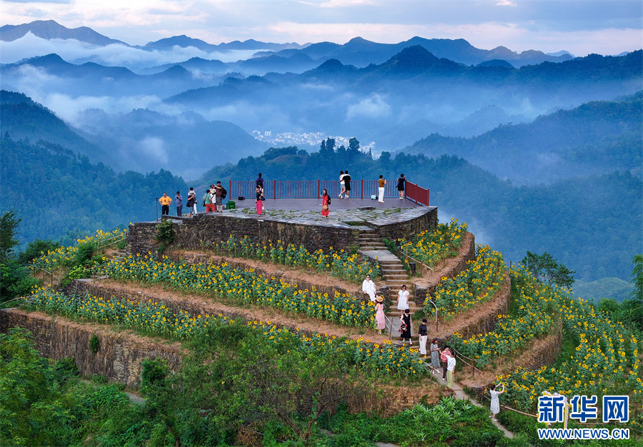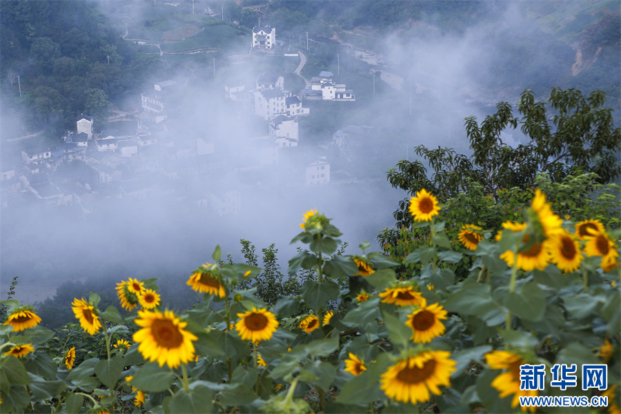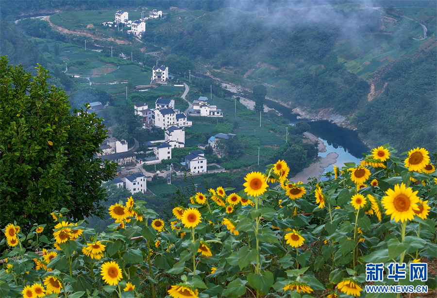 夏日,安徽省黃山市歙縣石潭古村景色迷人,向日葵、格?;ù蔚诰`放。游客們在花海中徜徉,感受著詩意盎然的夏日鄉(xiāng)村美景。