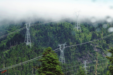11.為了萬家燈火通明,中國電力工人將一座座電塔架在了海拔5000多米的云端里。