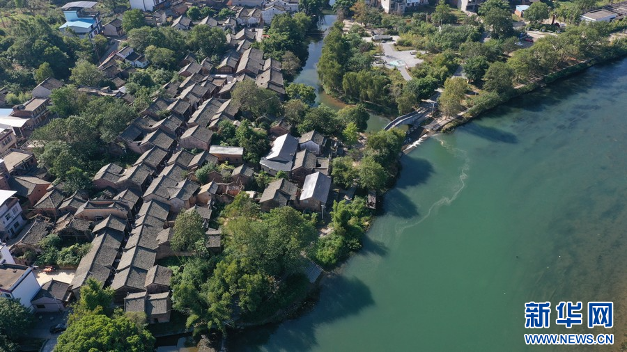 江口村三面環(huán)水、背靠青山,是三江回流之地。(新華網(wǎng)發(fā) 汪家榮 攝)