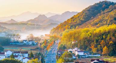 2024年12月1日,安徽省蕪湖市繁昌區(qū)孫村鎮(zhèn)中分村,錯落有致的民居與山巒疊嶂、蜿蜒道路、炊煙晨霧等在朝陽的照射下相映成景,宛若人間仙境。肖本祥攝(人民圖片網(wǎng))