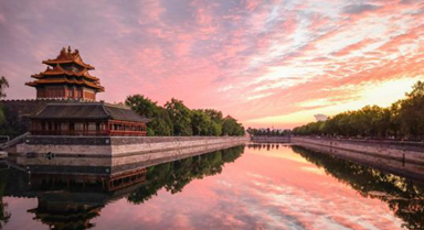 晚霞中的北京故宮東北角樓(手機(jī)照片,7月20日攝)。