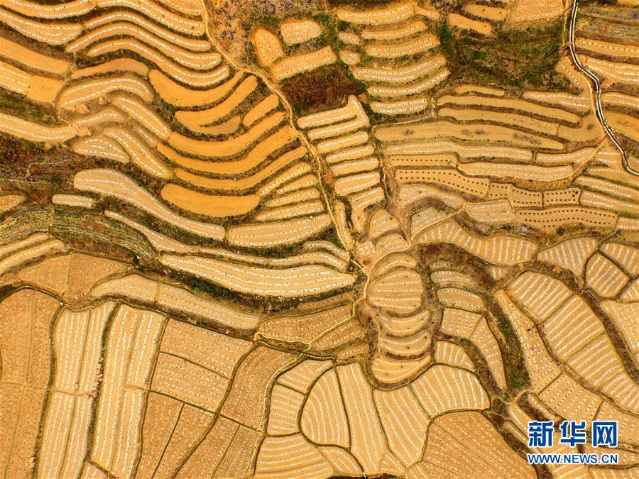 這是3月14日航拍的廣西百色市右江區(qū)永樂鎮(zhèn)西北樂村西瓜梯田景色。時下,廣西百色市右江區(qū)永樂鎮(zhèn)西北樂村進入西瓜種植護理季節(jié),地膜縱橫交錯的層層瓜田和壯族村落構成一幅美麗的田園畫卷。百色市右江區(qū)永樂鎮(zhèn)是廣西有名的西瓜之鄉(xiāng),全鎮(zhèn)種植西瓜1.5萬畝,年產西瓜2.8萬噸。新華社記者 黃孝邦 攝