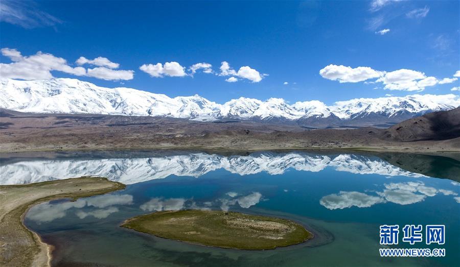 公格爾九別峰倒映在卡拉庫里湖里(6月7日攝)。6月的帕米爾高原風(fēng)光旖旎,吸引國內(nèi)外大量游客前來領(lǐng)略它的神韻。 新華社記者趙戈 攝
