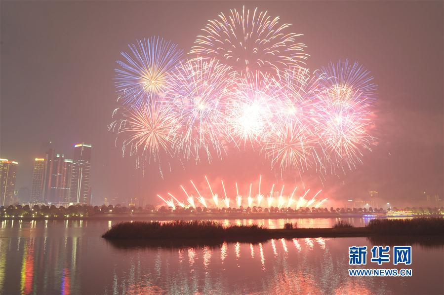 2017年1月1日夜晚,長沙橘子洲附近湘江上空綻放絢麗焰火。當(dāng)晚,湖南長沙橘子洲舉行焰火晚會慶祝新年到來。整場焰火晚會主題為“多彩星城、魅力長沙”,焰火燃放時間約20分鐘。 新華社記者 龍弘濤攝