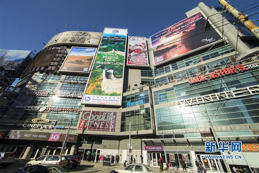 這是1月1日在加拿大多倫多市中心的鄧達(dá)斯廣場(chǎng)拍攝的“美麗中國——2017絲綢之路旅游年”主題宣傳廣告牌。從2016年12月26日起,由中國國家旅游局推出、以“美麗中國——2017絲綢之路旅游年”為主題的大型旅游宣傳廣告在加拿大多倫多市中心鄧達(dá)斯廣場(chǎng)亮相,向人們展示中國美麗而豐富的旅游資源。整個(gè)活動(dòng)將持續(xù)5周。新華社發(fā)(鄒崢攝)
