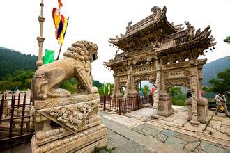 影壁中間鑲嵌有一石雕刻,文殊騎獅居中,人物花卉滿(mǎn)布四周,構(gòu)圖嚴(yán)謹(jǐn),神情逼真。向北登108級(jí)臺(tái)階即達(dá)山門(mén),門(mén)前漢白玉石獅一對(duì),勾欄小拱橋一座,石牌坊一座,旗桿高聳于兩側(cè),雕工均佳。其中石牌坊最引人神往,從基石,抱柱,斜戧,額枋,斗拱到瓦頂,脊獸,無(wú)一不是精雕細(xì)刻,人獸,花卉,流云,山水等分布殿內(nèi),玲瓏剔透,它共有三門(mén)六柱,呈“一”字形,整體雄偉壯觀,巧奪天工,據(jù)說(shuō)是由工匠耗時(shí)六年才建成。牌坊上刻有89條蛟龍,鱗爪俱現(xiàn),神態(tài)逼真;人物表情栩栩如生。游人觀后,無(wú)不交口稱(chēng)贊,印象深刻。寺內(nèi)三座院落橫向排列,相互串通,又各有山門(mén),自成風(fēng)格。東院為殿院,依地勢(shì)分前后兩進(jìn),除山門(mén)外,中線上還有佛殿兩座,圍枝廂房配殿,塑像俱存,彩繪房和獻(xiàn)亭,曲廊環(huán)繞,雙塔高聳,其中普濟(jì)禪師塔雕尤為精致。距龍泉寺西北里許的山坡,有一座楊業(yè)的瘞骨塔,六角、三級(jí),高約10米。傳說(shuō)楊業(yè)死后,五郎將其尸骨葬此,并建塔紀(jì)念。宋太宗后來(lái)追封楊業(yè)為楊令公,故后人稱(chēng)此塔為令公塔。 (責(zé)任編輯:李冬梅) |