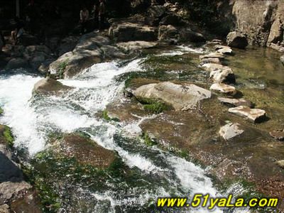 蟒河自然保護區(qū)方圓20多平方公里,這里青山泛翠、山峰疊嶂,鷹鷲聲聲鳴,猿聲陣陣啼,以山奇水秀,自然景觀奇特、幽美著稱。桑林是古代名君湯王禱雨圣地。出桑林沿崎嶇小路往南行10公里,陡立眼前的是高聳入云的指柱山,其山錦云蓋頂,翠色披身,沿盤山小道拾級而上,可到達山巔,南望黃河如晶瑩玉帶,自天而垂;北眺陽城錦繡河山,盡收眼底。下達指柱山,向東南而去數(shù)里,再登形似寶塔一般的高峰,俯瞰深谷,深不見底,乃人跡罕至青云谷,出谷相望便是蟒河。 蟒河,豐水緩流,瑯瑯有聲。飲之,甜甘似糖;浴之,滑如膏脂。喝點潔凈的河水,潤肺生津,延年益壽;洗浴一番,更使肌體光膩,膚疾頓消。這里盛產(chǎn)珍貴藥材紅山萸,聞名中外,遠銷異國他鄉(xiāng)。 站在北岸的石崖上,遙望北岔口山盆地,即“平地突兀起一峰,翹首直插九霄重”的棋盤山,是陽城古之八大名景之一。距此東南5公里,便是山崖當?shù)?,別無他路,壁間唯有一縫,只容一人側(cè)身而過。傳說西漢末年,王蟒趕劉秀至此,千鈞一發(fā)之際,劉秀舉刀用力一砍,劈開一條石縫,逃遁而去,因此得名“鍘刀縫”。往南再爬幾道峻嶺,一座橫亙延綿的高山半崖上懸掛兩個大窟窿,鉆過窟窿便是一馬平川的濟源縣。據(jù)傳,這窟窿便是當年劉秀用利箭射透石山厚崖,方得絕路逢生留下的歷史銘記。 轉(zhuǎn)到西南方,看到的是令人驚訝不已的滴水盆。滴水盆鑲于兩崖之間,底平口闊,圓如滿月,光若釉瓷,酷似銅盆。無鬼斧神刀之痕 ,有巧奪天工之妙。兩崖壁滴水匯入其中,清澈透底。滴水盆畝余之大,奇而怪之。雨季滴水成河,盆水齊緣,不溢流;山洪漫盆而過,盆中不見污泥沙礫;枯季滴水如淚,盆水亦不減少;山風呼嘯而吹,盆面不見柴草浮渣。晝行盆邊,疏影橫斜日清淺;夜經(jīng)此處,暗香浮動月黃昏。 無獨有偶,再行5公里之地,又有一個天生的洗臉盆,面積三分地大,形似滴水盆,圓如規(guī)定徑。水無源,清波蕩漾;盆無蓋,一眼見底。當?shù)厝藢⒌嗡枧c洗臉盆稱為筋骨相連的子母盆。 過了洗臉盆便是水簾洞。一股兩米寬的泉水從北峽溝的洞中涌出,緩流四五十米后順山崖直壁而下,一派“飛流直下三千尺”的磅礴氣勢。其后一深洞,嘩嘩瀑布落就半崖伸出的青石板上,打著飛快的漩渦卷人洞內(nèi),而后又從洞底端漏口處噴出,驚濤駭浪之聲震山蕩谷。泉水正是莽河之源。這個洞叫“出水洞”,一年四季泉水奔流不息。泉水流經(jīng)之處,有一個懸崖,形成瀑布,這就是莽河著名的風景區(qū)“水簾洞”,因為懸崖中間有個洞,像是在瀑布中間有個巨莽的腦袋,蟒口大張,吸水噴霧,戲耍流泉。另有一塊巨石,像是一只烏龜從甲殼底下探出了頭,似乎在祈求幫助。嘩嘩瀑布落就半崖伸出的青石板上,打著飛快的漩渦卷人洞內(nèi),而后又從洞底端漏口處噴出,驚濤駭浪之聲震山蕩谷。 漫步林前小徑,只見那滿山遍野獼猴群掛滿枝頭。隱身石后細看,猴之王國,樂趣無窮。有的攀枝縛藤,吊耍千秋;有的攜嬰抱子,盡享天倫;也有的東追西趕,躥上躥下;還有的磨肩擦耳,啃果嚼食。一見有人出現(xiàn),領(lǐng)首猴王高叫一聲,群體奔竄如箭,霎時跑得無影無蹤。 前行半里之地,一只偌大的烏龜呈現(xiàn)眼前。其似一塊整石雕成,橫臥大河中心。龜頭如蛇,龜脛似鵝,嘴巴大張,彎曲向上。短小的尾巴下留有屁眼窟窿,龜爪前高后低,其勢活像往岸邊爬行,雖靜若動,妙趣橫生。腹腔空蕩可容數(shù)人,貼耳聆聽,嗡嗡之聲不絕。 峰回路轉(zhuǎn),自東而北,約三公里地便是連三汪。一條狹長的青石溝,兩邊陡立峭壁自下而上向外直斜上升,呈漏斗狀,光滑如鋒,難以立足,擦壁而過,提心吊膽。溝底青石板面,天衣無縫,面上直線排列的三個聚水汪,圓似皮球,間距相等,相互間有不足一尺寬深的半圓小道,左右通水,貫連三汪。晝觀,日出水中,紅霞映崖;夜看,月沉汪底,清輝迷人。 轉(zhuǎn)一彎,過一崖,映人眼簾的是巨人牽悍馬。巨人一塊整石,身高丈八,腰粗膀圓,頭大如斗,挽髻冠頂,鼻高耳垂,五官分明,寬衣大袖,長袍拖地,一臂貼膝,一臂半伸,面南背北,英姿勃勃。悍馬亦是一整石,與巨人相連,身二丈有余,背高九尺還多,腰肥體壯,四腿如柱,前腿高抬,后腿著地,兩耳直豎,昂首向前。 再過一崖,又是別具一格的一柱峰拔地而起。高十余丈,形如尖頂寶塔,直沖云霄。其自然之美,著實令人嘆服。 走出后大河到達樹皮溝,遠見高山頂蹲著一只大石貓,其頭直徑兩米,豎耳三尺有余,貓背如弓,體大超過巨象三倍,虎視眈眈,窺測四方,人稱鎮(zhèn)山貓。 沿坎坷小道西行7公里,是西山第一景——索道崖。高一千二百多丈,云霧之中只有一條天然石梯可通崖頂。崖頂峰一塊堅石圪嘴上建有廟宇,柱為荊葉木,梁是酸棗樹,可見山之深邃,木之珍貴,廟之久遠。再攀三丈余,到達崖巔,又是一小巧玲瓏的廟宇,神清氣爽,如臨仙境。南見黃河之水天上來,東看太行巍峨入云天,西眺中條山脈林蒼茫,北望太岳群峰無盡邊。 下達索道崖便是孿生崖。孿生崖雙崖矗立,齊頭并肩,高數(shù)百米,寬數(shù)十丈,有腿有臂,似人非人,彼此一模一樣,而又互不相連。雙崖左右,峭壁凌空,飛鳥云集。中夾一峽谷,深不見底。兩崖外表盡同,唯石色有異,其一朱紅有澤,其一灰黑無光,雖一脈相承,竟紅黑分明。自然之謎,使人百思不得其解。 翻越孿生崖,經(jīng)一線天、牛郎織女石、紅龕崖和藥王溝,看到的
