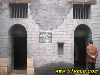 “蘇三監(jiān)獄”在今洪洞縣政府院內(nèi)西南,亦即明洪洞縣衙西南角。一進掛有“明代監(jiān)獄”匾額的大門,首先看到的便是蘇三的塑像,外院當年監(jiān)獄的辦公場所,右邊的院落是普通監(jiān)牢,中間是過道,兩邊共有監(jiān)牢十余間,過道頂上布有鐵絲網(wǎng),網(wǎng)上掛有銅鈴,一有犯人企圖越墻逃跑,便會觸響銅鈴。過道的盡頭,正對的是獄卒的值班室,右面的墻上有獄神的供位,傳說當年囚犯入獄都要參拜獄神,就是獄神下面的墻基處,有一小洞,是當年運送尸體的出口,犯人在獄中病死或是被打死,是不能從大門抬出去的,只能從這個小洞拉出去。過道盡頭的左邊,便是死囚牢的大門,死囚牢雙門雙墻,門上畫有狴犴,狴犴是龍的兒子,長得卻象老虎,因此人們誤稱為“虎頭牢”,大約是因為龍生九子,子子不同,狴犴專門掌管刑獄,大門只有一米六高,所有進入死囚牢的人都要在狴犴像前低頭,顯示對法律的敬畏。進了門洞,里面還有一道門,而這兩道門卻是一扇從右開,一扇從左開,不明就里的囚犯如果越獄,往往出了第一道門卻怎么也打不開第二道門,一個小小的改動就能起到拖延犯人越獄時間的作用,不能不佩服古人的智慧。進入死牢院,右面是一堵高墻,左面就是當年關(guān)押蘇三的牢房,里面有蘇三的塑像。死囚院的中央還有當年蘇三坐監(jiān)時洗衣的水井和石槽,井口留有一道道繩索磨下的印記,井口只有半尺多寬,這是為了防止死囚投井自殺。據(jù)說,右面的高墻里灌裝的都是流沙,如果犯人想要挖墻越獄,流沙便會從挖開的小口中源源不斷地流來,使其難以挖通圍墻。1964年我國著名考古學(xué)家王冶秋先生曾在洪洞考察確認,蘇三監(jiān)獄為我國罕見的明代監(jiān)獄,并題詩曰:“虎頭牢里羈紅妝,一曲攪亂臭水漿。王三公子今何在?此處空留丈八墻?!笔陝觼y期間,蘇三監(jiān)獄被拆毀。為了使“蘇三監(jiān)獄”這一僅存的明代監(jiān)獄得以保留,洪洞縣人民政府后做出了修復(fù)“明代蘇三監(jiān)獄”的決定。修復(fù)事宜于1984年5月開始,同年10月竣工。