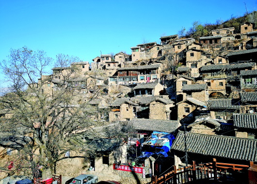 在太行山里一塊凸起的大山石上,村民們建起了鱗次櫛比、不同于當(dāng)?shù)仫L(fēng)格的50余座院落,他們?nèi)粘龆?、日落而息,歷經(jīng)千年。