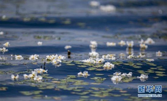 在洱海中開放的海菜花(5月31日攝)。在云南大理洱海,被視為“水質(zhì)風(fēng)向標(biāo)”的海菜花一度難覓蹤跡。2016年底,云南省開啟搶救式保護(hù)工作,全面打響洱海治理攻堅戰(zhàn)。2019年洱海全湖水質(zhì)繼2018年后再次實現(xiàn)7個月Ⅱ類,主要水質(zhì)指標(biāo)變化趨勢總體向好。如今海菜花又在清澈的湖水中隨波蕩漾。 (新華社記者 江文耀 攝)