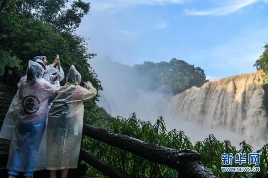 6月14日,游客在觀賞黃果樹瀑布。 新華社記者 楊文斌 攝