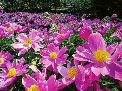 “芍藥承春寵,何曾羨牡丹?!鄙炙幨翘写耗┫某鯐r(shí)節(jié)主要花卉,由而得“殿春”之名。芍藥被譽(yù)為“花相”,在中國(guó)傳統(tǒng)文化中有著重要的地位。漪汾公園種植芍藥約5000株,品種色彩豐富,當(dāng)芍藥競(jìng)相綻放之際,令無(wú)數(shù)游客沉醉,駐足觀賞、留影。