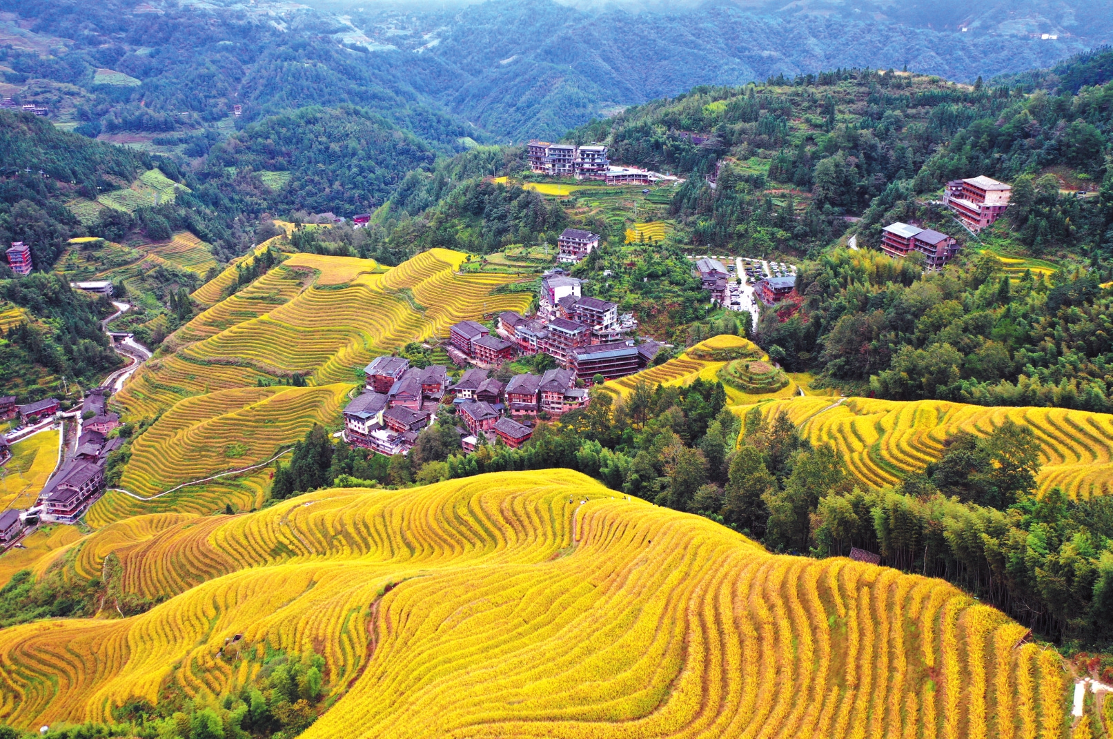 眼下,廣西龍勝各族自治縣龍脊梯田一片金黃,成為眾多游客觀光“打卡”的熱門景點(diǎn)。龍脊梯田已有2300多年歷史,是聯(lián)合國糧農(nóng)組織認(rèn)證的全球重要農(nóng)業(yè)文化遺產(chǎn)。新華社記者陸波岸 攝