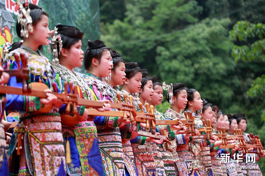 5月3日,貴州省首批魅力侗寨——榕江縣烏公侗寨歡度傳統(tǒng)的竹米節(jié),重溫侗民遠古農耕風情。竹米節(jié)也叫吃竹筍飯,在每年谷雨至立夏期間竹筍生長的時候,侗族群眾采摘斑竹筍,把糯米灌進筍筒煮熟食用。這樣既能保持米飯的原味,又有竹筍的清香,并且還方便攜帶至坡上田間地頭食用。久而久之,侗族人每到春夏之交的農耕時節(jié)都會過竹米節(jié),殺豬宰羊祭祀侗族祖先,唱歌跳舞祈求五谷豐登。新華社發(fā)(楊成利 攝)