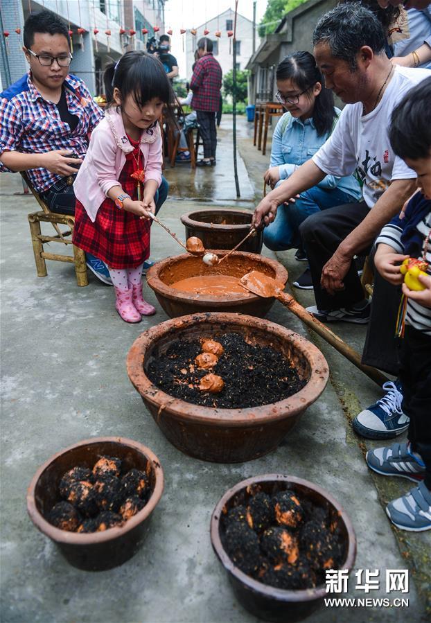 “立夏”節(jié)氣,在歷史悠久的水鄉(xiāng)古鎮(zhèn)——杭州塘棲古鎮(zhèn),村民在老刀糕餅鋪老師傅的帶領(lǐng)下,沿襲傳統(tǒng)習(xí)俗,用米粉制作“立夏狗”、搭土灶蒸“野米飯”、用草木灰做“灰鴨蛋”,以水鄉(xiāng)特有的民俗迎接初夏。新華社記者 徐昱 攝