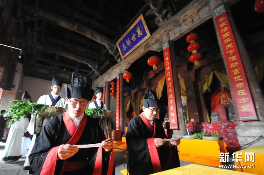 5月7日,山西運(yùn)城新絳縣在當(dāng)?shù)厍旯懦墙{州的文廟首次舉行釋菜禮大典,以弘揚(yáng)傳承尊師古文明,吸引了城鄉(xiāng)眾多群眾和中小學(xué)生冒雨觀典。新華社發(fā)(高新生 攝)