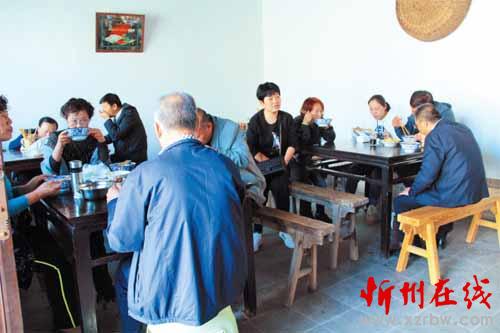 今年中秋節(jié)期間,筆者在這家小店招待了一位河北保定籍的馬姓文友??腿寺犝f中午要用高粱面招待他時(shí),臉上隱隱露出不悅之色。當(dāng)熱騰騰的出籠紅面魚魚端上桌時(shí),他也學(xué)著澆上臊子慢慢品嘗。只見他邊吃邊不住地點(diǎn)頭,臉上也多云轉(zhuǎn)晴了。當(dāng)一碗紅面魚魚下肚后,他雙手豎起大拇指,夸贊這頓別有風(fēng)味的粗糧美餐。友人說,在他們那里有一句歇后語:日本人吃高粱面——沒有法子。在他的印象中,“高粱黑豆乃驢馬之料”,人不到最困難的時(shí)候是不會(huì)吃的。想不到忻州人竟能把這種粗糧做得如此美味!