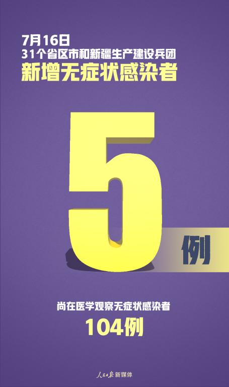31個省(自治區(qū)、直轄市)和新疆生產(chǎn)建設兵團報告新增無癥狀感染者5例(境外輸入2例);當日無轉(zhuǎn)為確診病例;當日解除醫(yī)學觀察5例(境外輸入4例);尚在醫(yī)學觀察無癥狀感染者104例(境外輸入79例)。