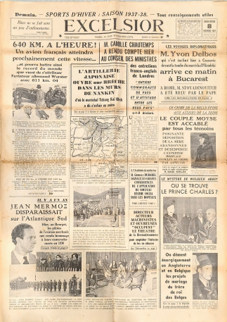 ??1937年12月8日發(fā)行的法國《卓越報》。(侵華日軍南京大屠殺遇難同胞紀念館供圖)