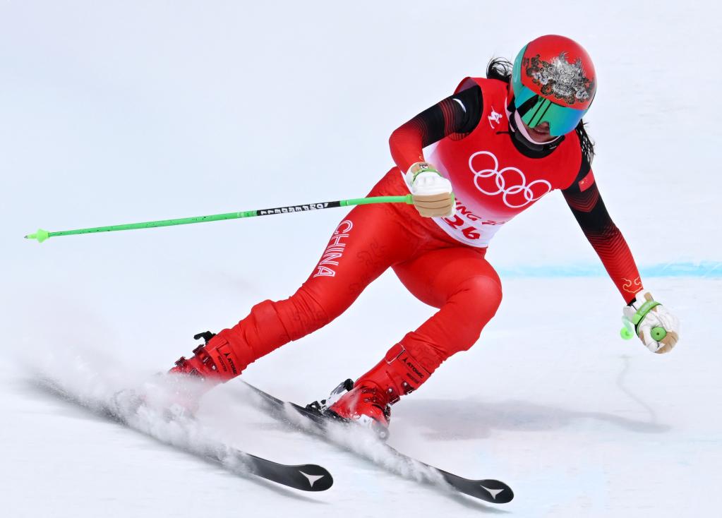 2月15日,中國選手孔凡影在北京冬奧會(huì)高山滑雪女子滑降項(xiàng)目比賽中。新華社記者張晨霖?cái)z
