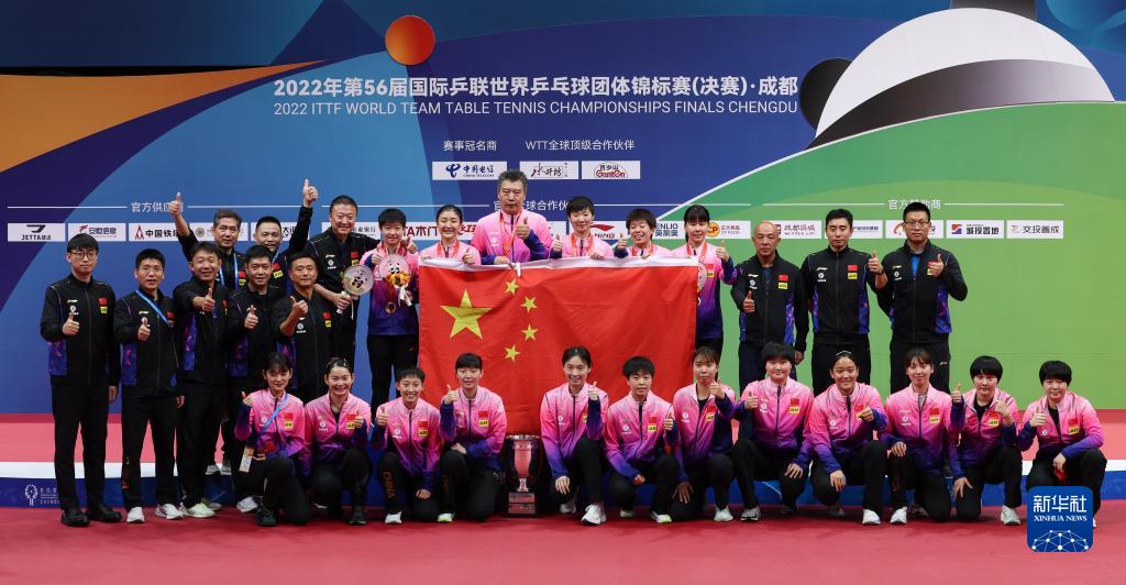 新華社成都10月8日電(記者陳地)8日晚,備受關(guān)注的2022年第56屆世界乒乓球團(tuán)體錦標(biāo)賽女團(tuán)決賽上演,中國隊(duì)三名隊(duì)員陳夢、王曼昱、孫穎莎發(fā)揮出色,3:0完勝日本隊(duì),幫助中國隊(duì)以八戰(zhàn)全勝的驕人戰(zhàn)績奪冠,并實(shí)現(xiàn)世乒賽五連冠。