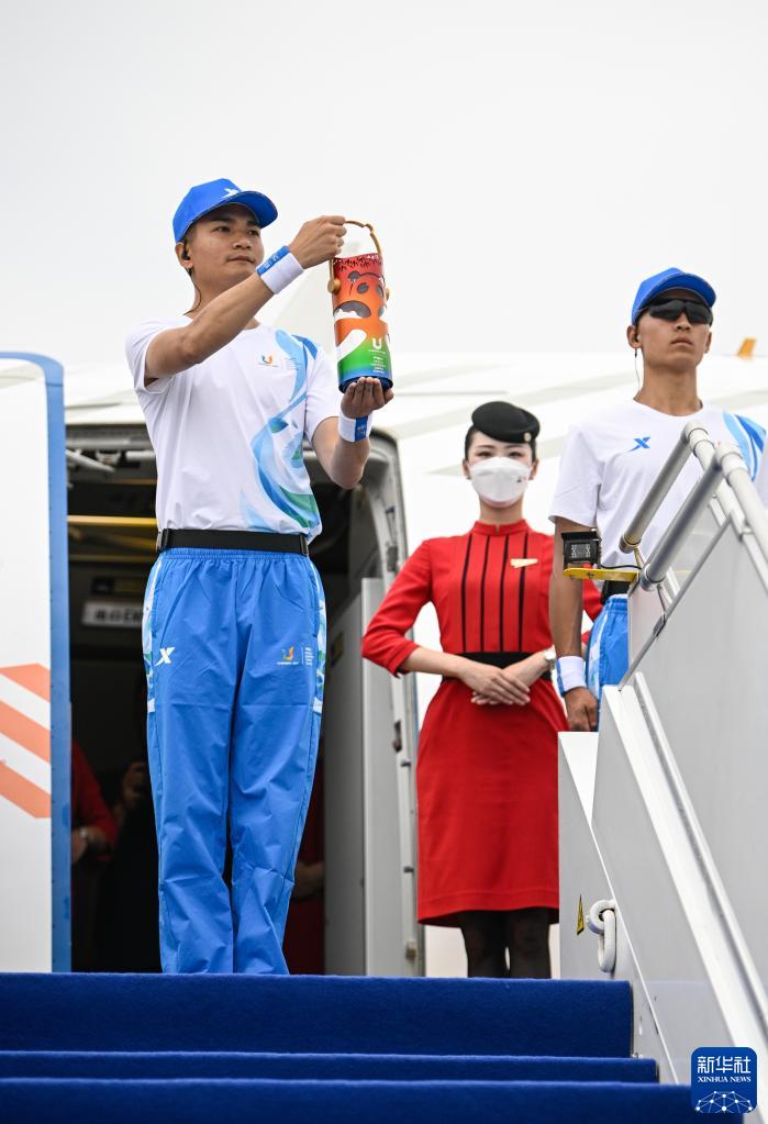 新華社成都6月8日電(記者陳地)8日上午,第31屆世界大學(xué)生夏季運(yùn)動(dòng)會(huì)火炬?zhèn)鬟f啟航儀式在成都天府國際機(jī)場(chǎng)舉行?;鹁婊鸱N抵達(dá)北京后,將于10日正式開啟成都大運(yùn)會(huì)火炬?zhèn)鬟f。