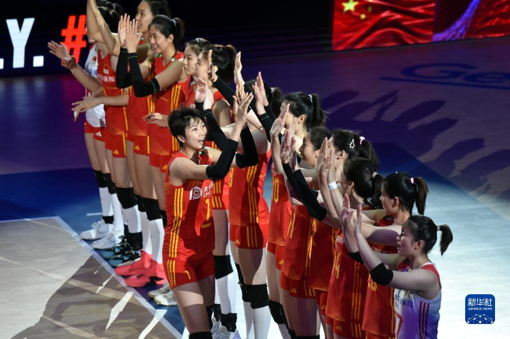 6月13日,中國隊球員慶祝得分。新華社記者盧炳輝攝
