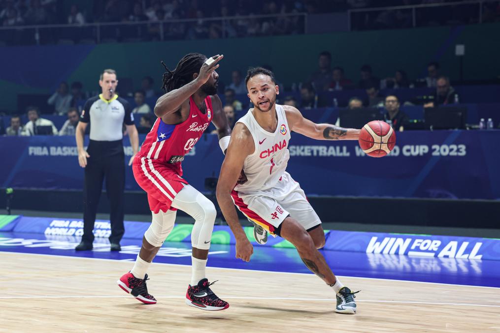 8月30日,中國隊球員李凱爾(右)在比賽中突破。新華社記者 吳壯 攝 在塞爾維亞隊115:83大比分戰(zhàn)勝南蘇丹隊的情況下,中國男籃只要大比分戰(zhàn)勝波多黎各隊,仍然有以B組第二名成績晉級的可能。本場比賽,中國隊在首發(fā)陣容上進行了調(diào)整,李凱爾重回替補席。上半場比賽,中國隊失誤不斷,波多黎各隊憑借籃板球上的優(yōu)勢很快便建立了領(lǐng)先,并最終帶著15分的優(yōu)勢進入到下半場。 易邊再戰(zhàn),中國隊在進攻端有所起色。在趙繼偉壓哨命中高難度三分球后,中國隊一度在第三節(jié)將分差縮小至9分??上щS后中國隊在第四節(jié)沒能將進攻勢頭延續(xù)下來,最終89:107不敵波多黎各隊,小組賽遭遇三連敗無緣晉級,波多黎各隊則攜手塞爾維亞隊成功闖入16強。