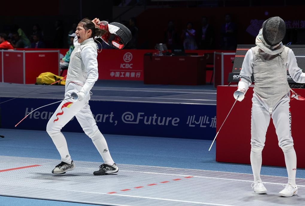 新華社杭州9月25日電(記者黃垚、董意行)闊別21年,亞運(yùn)會(huì)女子花劍個(gè)人金牌再次花落中國隊(duì)。 25日,杭州亞運(yùn)會(huì)女花個(gè)人決賽中,隨著黃芊芊刺中制勝一劍,顯示器上的比分定格在15:8。這位21歲的中國女花新星,為中國擊劍隊(duì)斬獲本屆亞運(yùn)會(huì)首金。