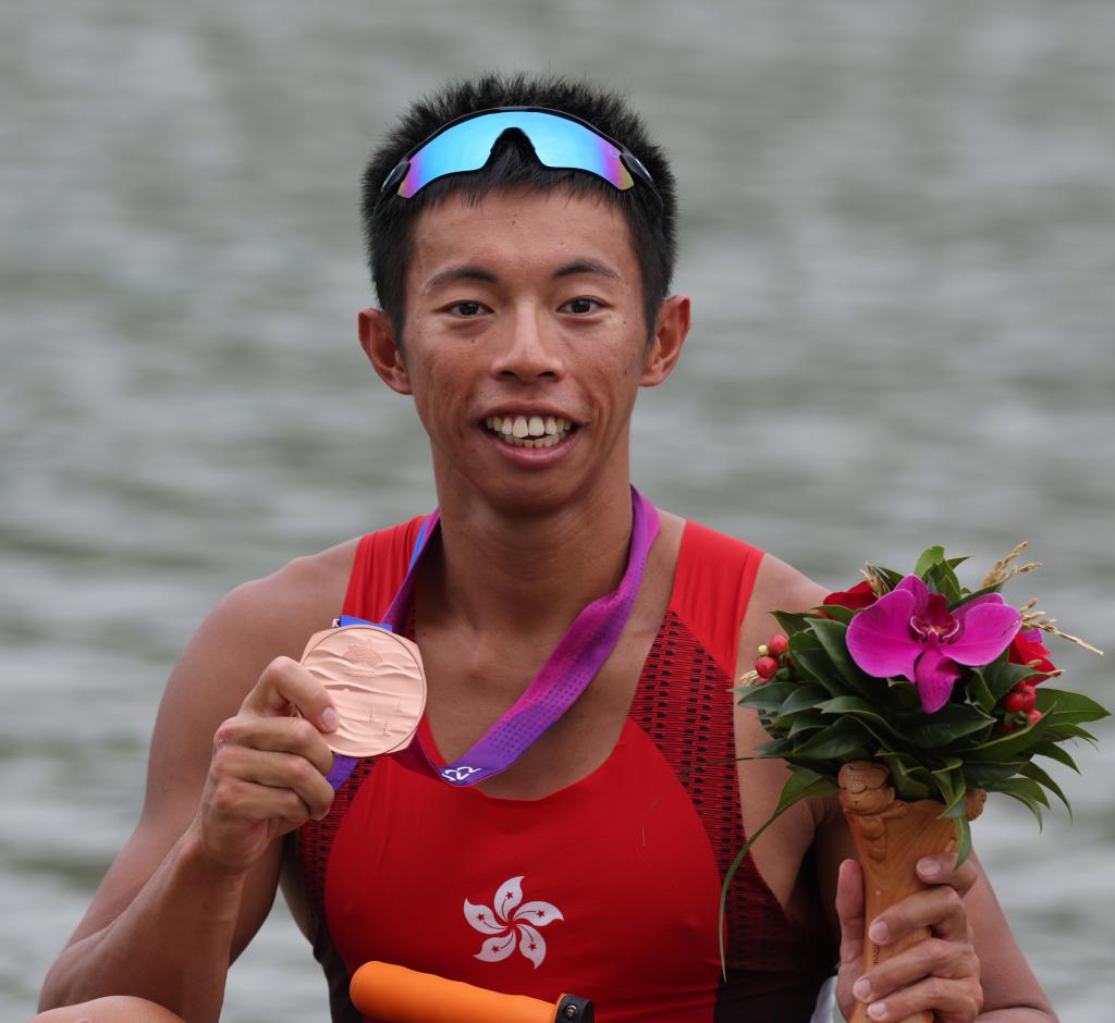 在男子單人雙槳決賽中,36歲的老將張亮蟬聯(lián)冠軍。張亮在出發(fā)后一“艇”當先,1500米過后已領(lǐng)先第二名4秒96,雖然他在最后500米時速度有所下降,但依舊憑借著前半程巨大的領(lǐng)先優(yōu)勢,以6分57秒06強勢奪金。上屆亞運會該項目銅牌得主、日本選手荒川龍?zhí)@得亞軍,中國香港隊運動員趙顯臻摘得銅牌。