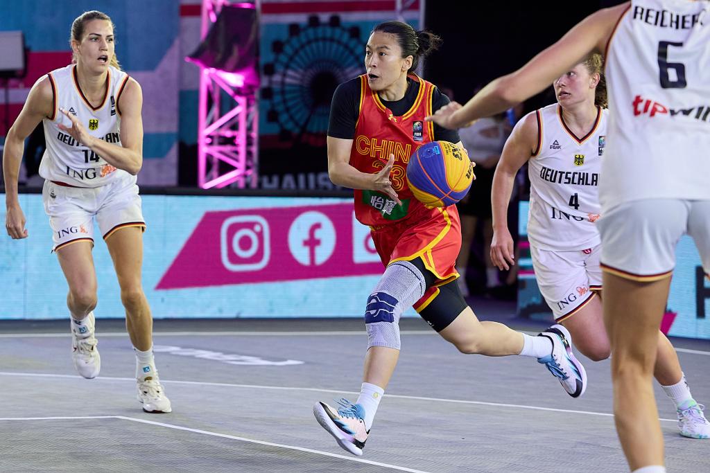 6月3日,中國隊球員王麗麗(中)在2023國際籃聯三人籃球世界杯女子組四分之一決賽中突破。新華社發(fā)(喬治斯·施耐德攝)
