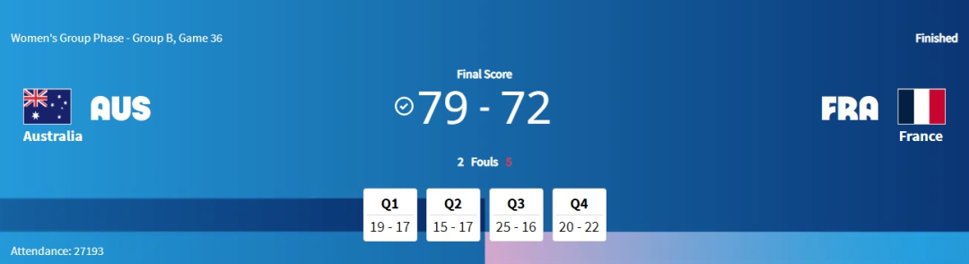 中新網(wǎng)北京8月5日電(記者 劉星晨)北京時(shí)間5日凌晨,巴黎奧運(yùn)會(huì)女籃小組賽全部結(jié)束。在最后一場比賽中,澳大利亞女籃79:72戰(zhàn)勝東道主法國女籃。本場取勝后,澳大利亞女籃以2勝1負(fù)的戰(zhàn)績出線。