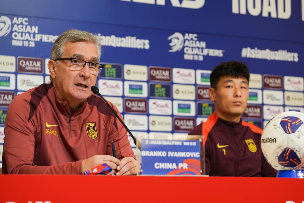 9月4日,中國(guó)隊(duì)主教練伊萬科維奇(左)在發(fā)布會(huì)上。新華社記者 張笑宇 攝