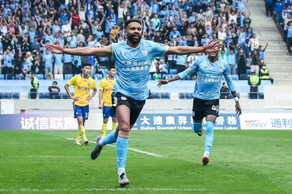 開場后,雙方展開激烈爭奪。上半場補(bǔ)時階段,大連英博隊(duì)外援科特尼克送出助攻,卡蘭加抓住機(jī)會頭球破門,為主隊(duì)取得領(lǐng)先。