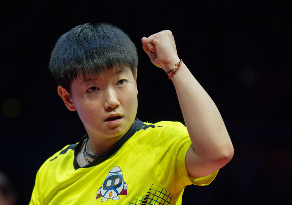 1月1日,深圳大學(xué)隊(duì)選手孫穎莎在單打比賽后慶祝勝利。新華社記者 孫非 攝