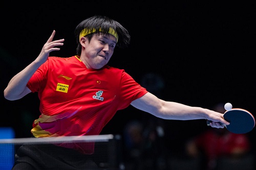 4月16日,王楚欽在比賽中回球。新華社發(fā)(張金加攝)