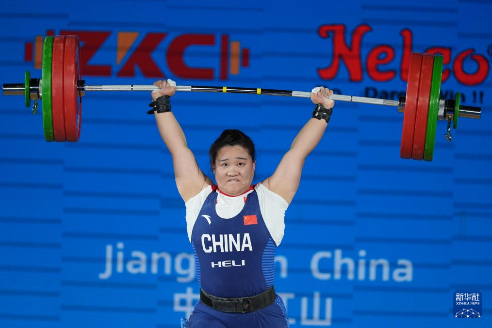 5月13日,中國選手廖桂芳在抓舉比賽中。最終,她獲得抓舉、挺舉、總成績三項冠軍,并分別以125公斤打破抓舉世界紀錄、279公斤打破總成績世界紀錄。新華社記者 侯昭康 攝