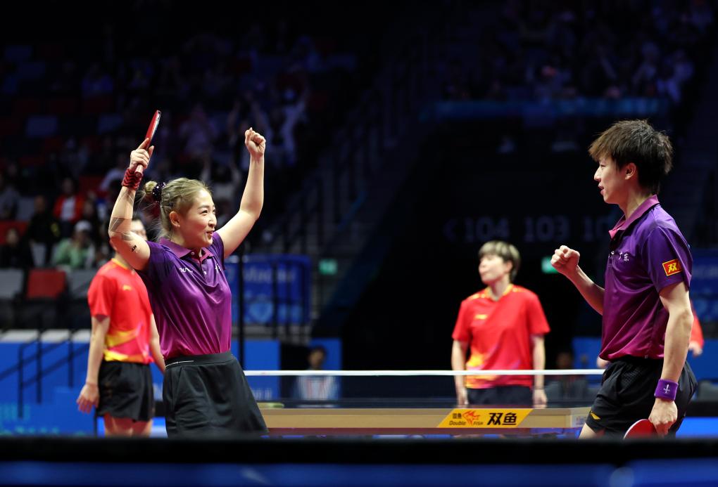 11月13日,河北隊選手孫穎莎在比賽中回球。新華社記者 陳斌 攝 此外,黑龍江隊王曼昱4:1擊敗遼寧隊王藝迪,她將在半決賽對陣陳夢。 當日,混雙比賽進行了半決賽,廣東隊林高遠/劉詩雯和遼寧隊王藝迪/袁勵岑的混雙較量打滿7局。廣東隊先丟兩局,場面一度被動,但“詩與遠方”組合憑借默契的配合將大比分打到3:3。決勝局,4:4、5:5、6:6,觀眾的加油聲不絕于耳,林高遠和劉詩雯最終將比分鎖定在11:8,率先拿到?jīng)Q賽門票。